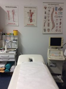 Nach der Erhebung der Anamnese erfolgt eine kurze mündliche Aufklärung über die Absicht der Untersuchung (und die auffordernde Bitte zur Entkleidung des zu untersuchenden Patienten je nach Untersuchungsabsicht). Der Dreh- und Angelpunkt einer Untersuchung stellt die möglichst frei stehende und höhenverstellbare Liege dar (Abb. 1).