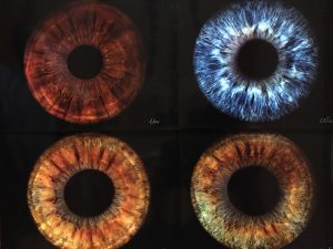 Abb. 5 Iris-Fotographie einer Familie (jeweils rechtes Auge, Eltern oben, Kinder unten)