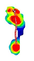 Abb. 1 Fußabdruck eines Hohlfußes re mit überlasteten Zonen unter Ferse und Ballen (rote Färbung)