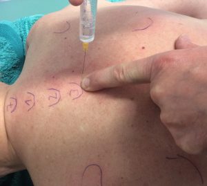 Abb. 1 Neuraltherapie nach Mink, hier des R. articularis n. spinalis Segment Th4/5 re