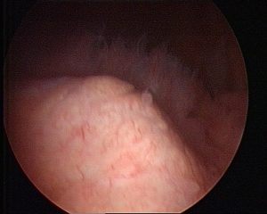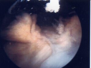 Abb.7 intraoperativer Situs einer spezifischen hyperplastisch-zottigen Synovialitis