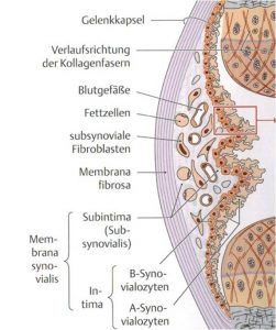 Sie besteht aus einer äußeren Schicht (Stratum fibrosum sive Membrana fibrosa), welche aus straffem kollagenem Bindegewebe in unterschiedlichen Schichtdicken, zahlreichen Nervenfasern und Gefäßen aufgebaut ist (Abb.1.aus [1]).