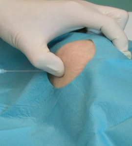 Abb.13 Punktion des linken Kniegelenkes
