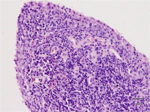 Abb.8 Histologie eines spezifischen rheumatoiden Synovialitis, mit freundlicher Genehmigung von Prof. Niedobitek, Berlin
